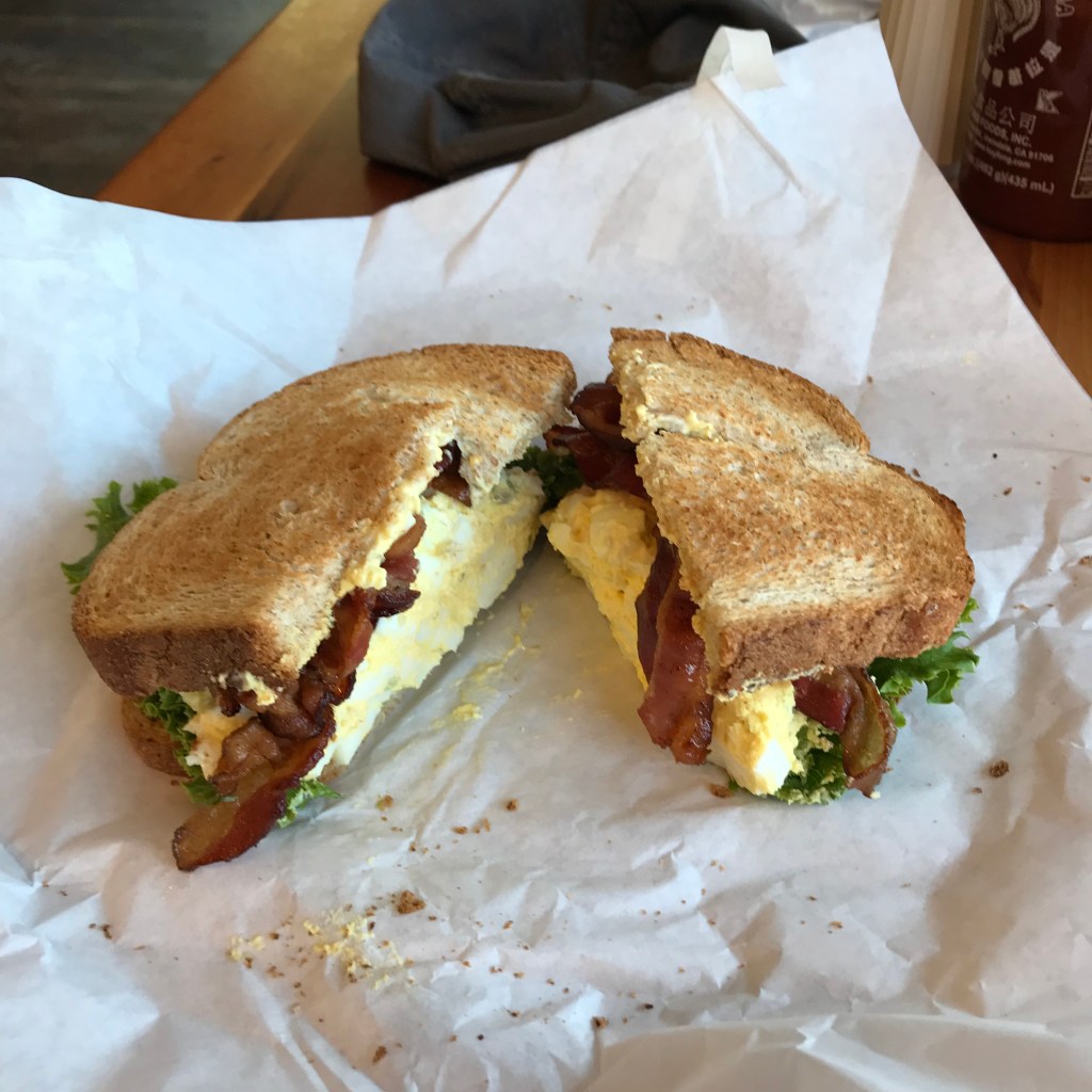 Egg Salad with bacon and lettuce on light wheat