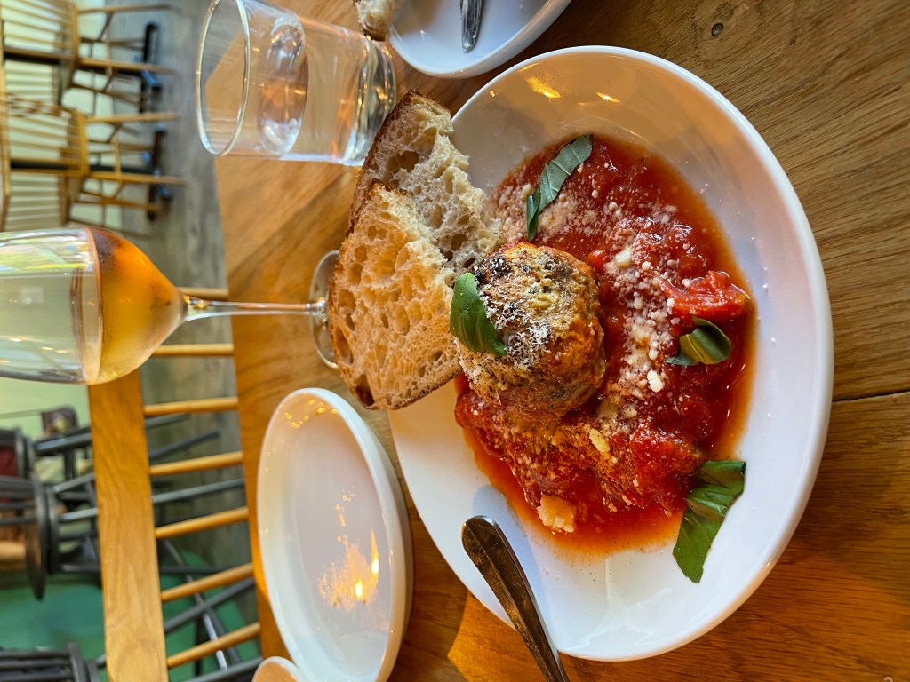 The Tesoro meatball in a rich tomato and vegetable sauce is the centerpiece of this dinner on 9/23/2021