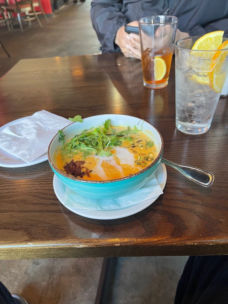 I’ve eaten at Harvest since it first opened nearly ten years ago. My preferred menu choices are pictured below. I rotate them based on seasonal availability but often just whim. I do have favorites and you see them. Their desserts are lovely creations but I only get them at dinner. Most of my visits are for lunch.