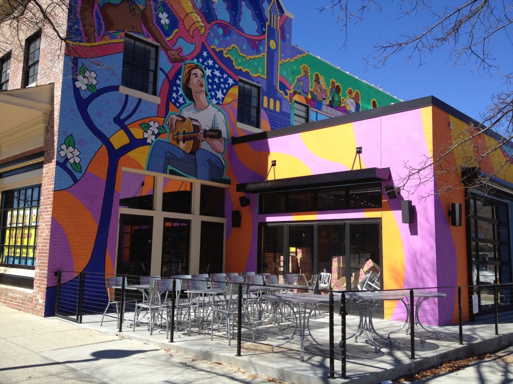 Mellow Marshmallow Pizza’s patio and impressive and colorful mural. Nearly place one dines at in Chapel Hill was a place older Carolina remember well. In the 1970s this building was a popular lunch spot it at this moment I can’t remember its name. The food was delivered within minutes of our ordering and the waiters the fastest in town.
