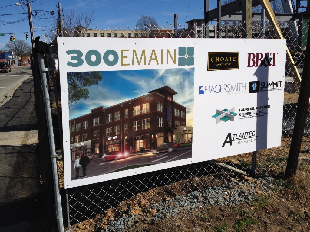 Construction work on East Main Street in Carrboro at the shopping center where Cats Cradle is located.