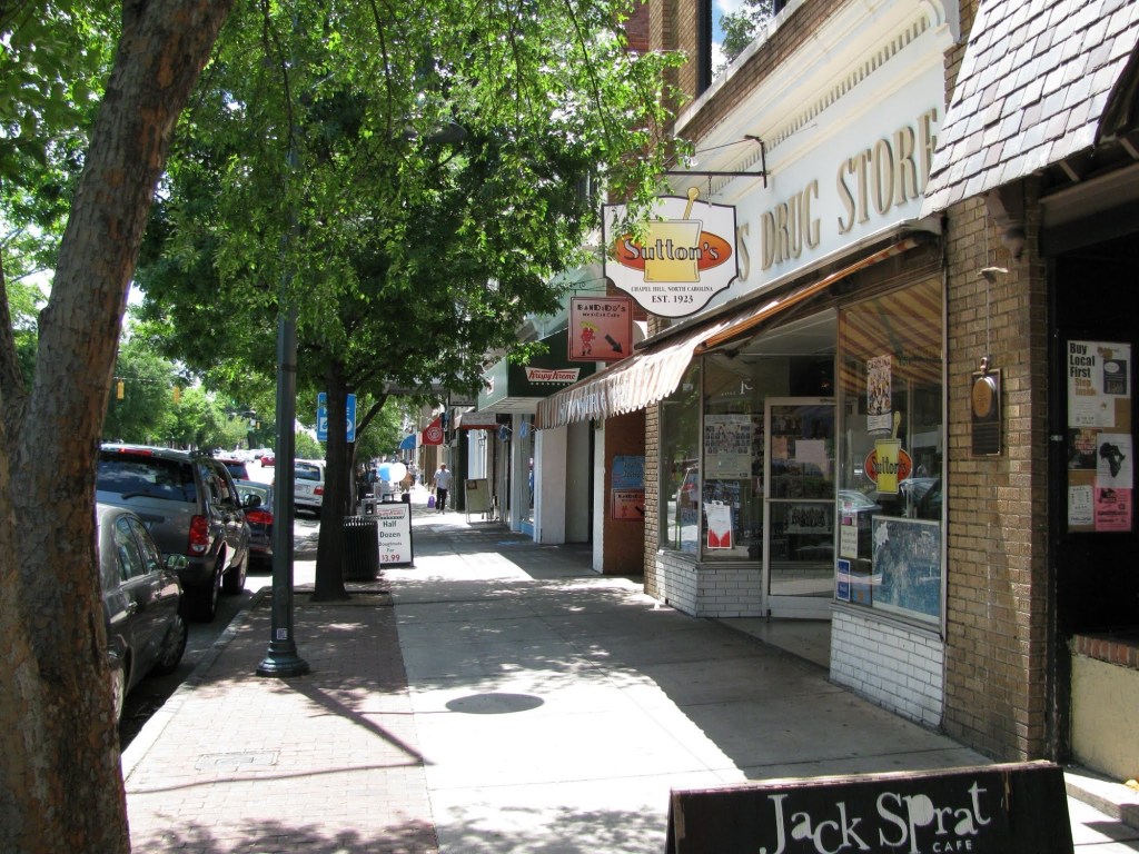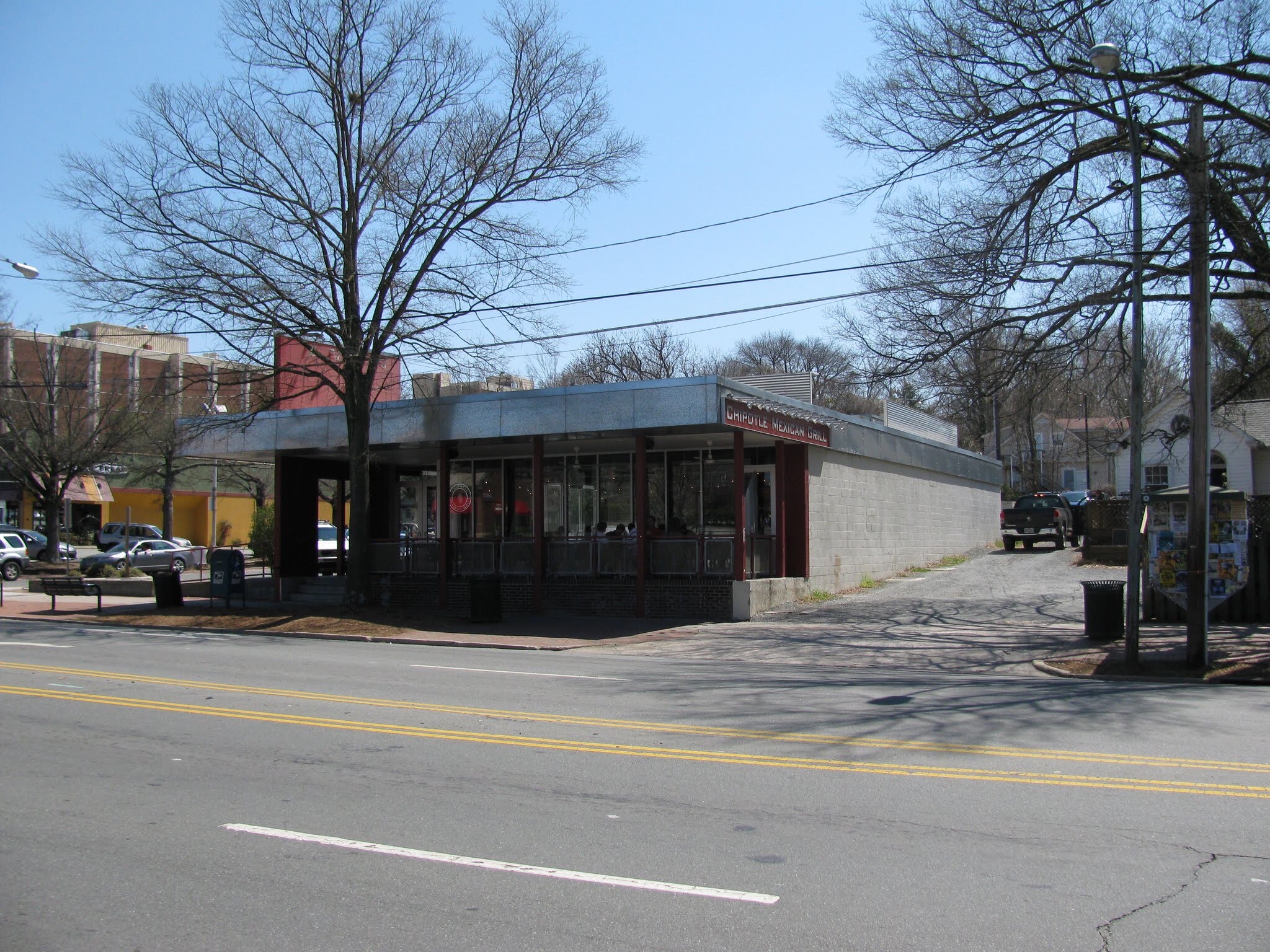 YoPo or The Yogurt Pump has been a durable favorite in Chapel Hill since 1982. What more do need to know about how delightful their frozen yogurts are??This building is now the now Grey Squirrel Coffee. At one point it was home to a a fine Italian restaurant that also served wonderful breakfasts and lunches. The sign reads Caribou Coffee, but this building has a lot of history behind it, for years it was an ESSO gas station. You see the sign for Caribou Coffee which was succeeded by a Moe’s Southwest Grill. The current occupant is Blues on FranklinStreet Smokehouse and Bar owned byCarolina alums.
