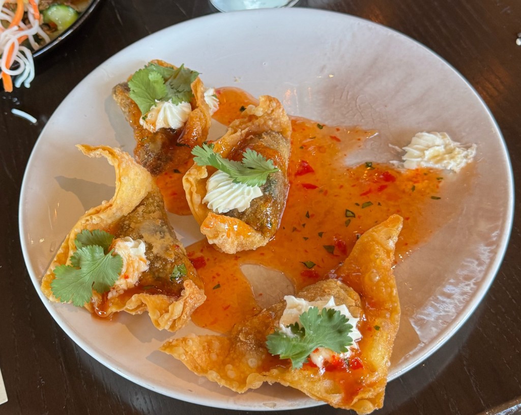 Crispy Mongolian beef wonton in spicy ginger sauce
