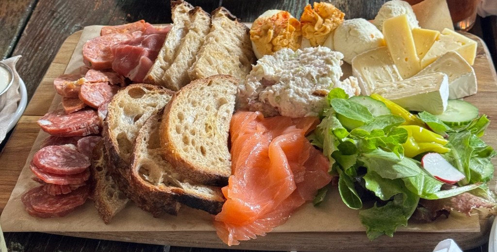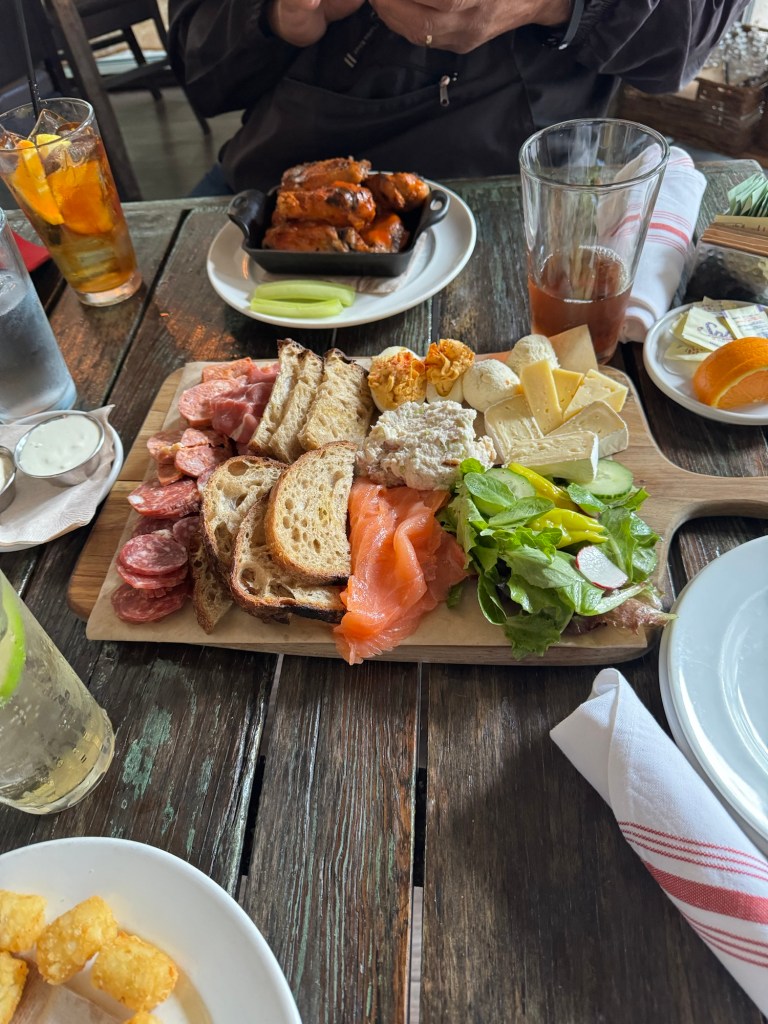 This is what my friend Scott and I had for lunch today. This is a very lovely and gratifying photo of our lunch, Local 22 restaurants, charcuterie board. I’ve been going to one or another Bakatsias restaurant for the 40 years I have lived at Chapel Hill and and each one has been a delight. But since several of my recent posts has been about going to places that are part of the dining scene in Chapel Hill, has been on my mind a lot lately and I do have one very favorite particular Bakatsia restaurant. It was wonderful place on Hillsborough at 9th Street in Durham called George’s’ Garage. Amazingly Bakatsia’s Juju is located now in the same spot. I only visited it several times a year because I wanted to have at least for friends visitors and of course myself. The only other place I treated this way was the Italian restaurant restaurant Aurora in Carrboro). My favorite dish at George’s was their duck comfit which I first tried there. I can almost still taste the dish.